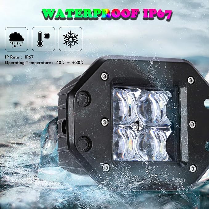 Amazon Com Samlight 2 Pcs 20w Rgb 5d Spot Led Work Light Driving Light Flush Mount Off Road Led Lights With Muti Color Strobe Flashing And Music Function Controlled By Bluetooth Or Wiring Harness