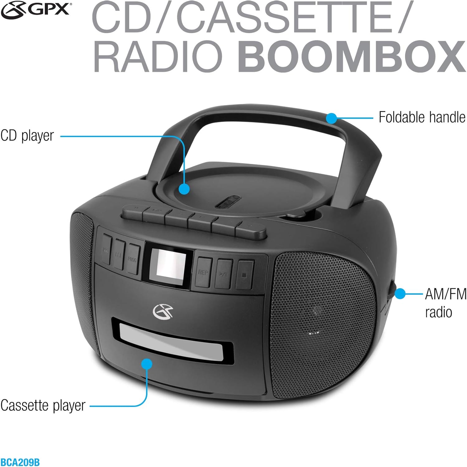 Amazon Com Gpx Bca209b Portable Am Fm Boombox With Cd And Cassette Player Black Electronics