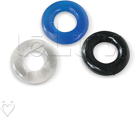Amazon Com Leluv Penis Ring Set Of 3 Tpr Donut Black Clear Blue One Of Each Color 1 5 Cm 0 6 Inch Inner Diameter Health Personal Care