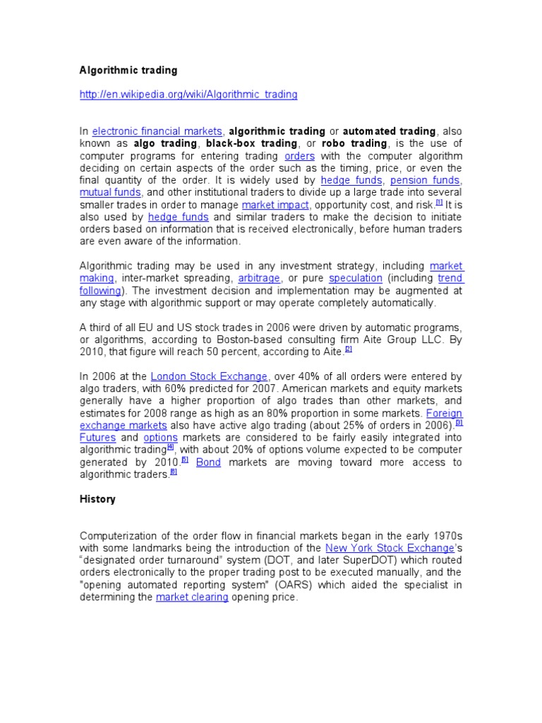 Algorithmic Trading Systems Wiki The Future Of Algorithmic Trading